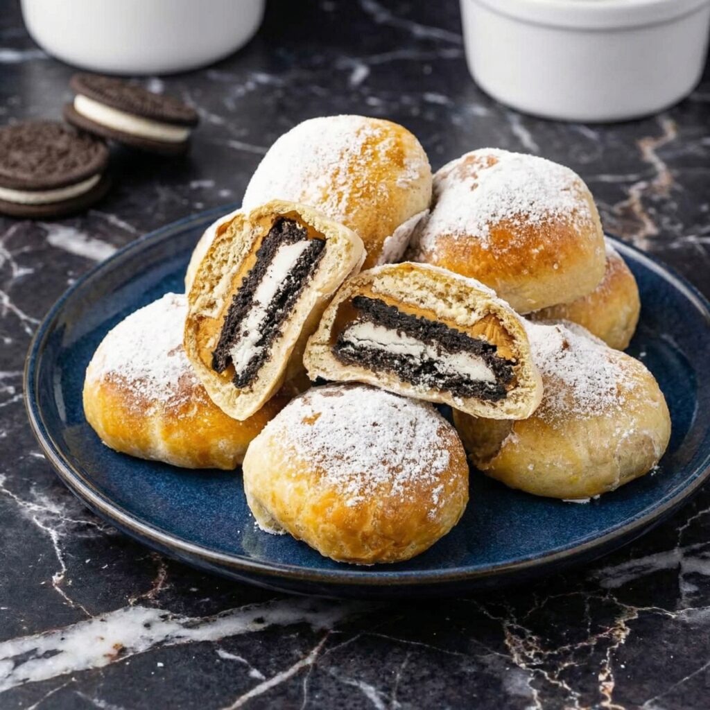 - Arrange fried Oreos on a serving platter. Dust generously with powdered sugar.
