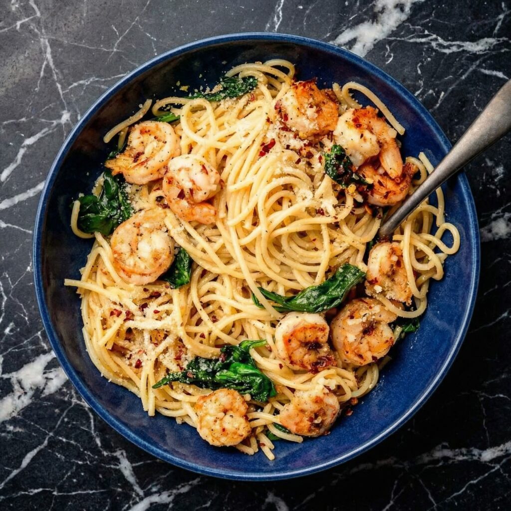 Garlic butter shrimp pasta is the ultimate quick-fancy meal. The kind of dish that makes you feel like a chef, even when you’re in sweatpants on a Wednesday. Succulent shrimp, seared until golden, then tossed with al dente pasta in a sauce that’s pure magic—butter, garlic, white wine, lemon, and a shower of fresh herbs.