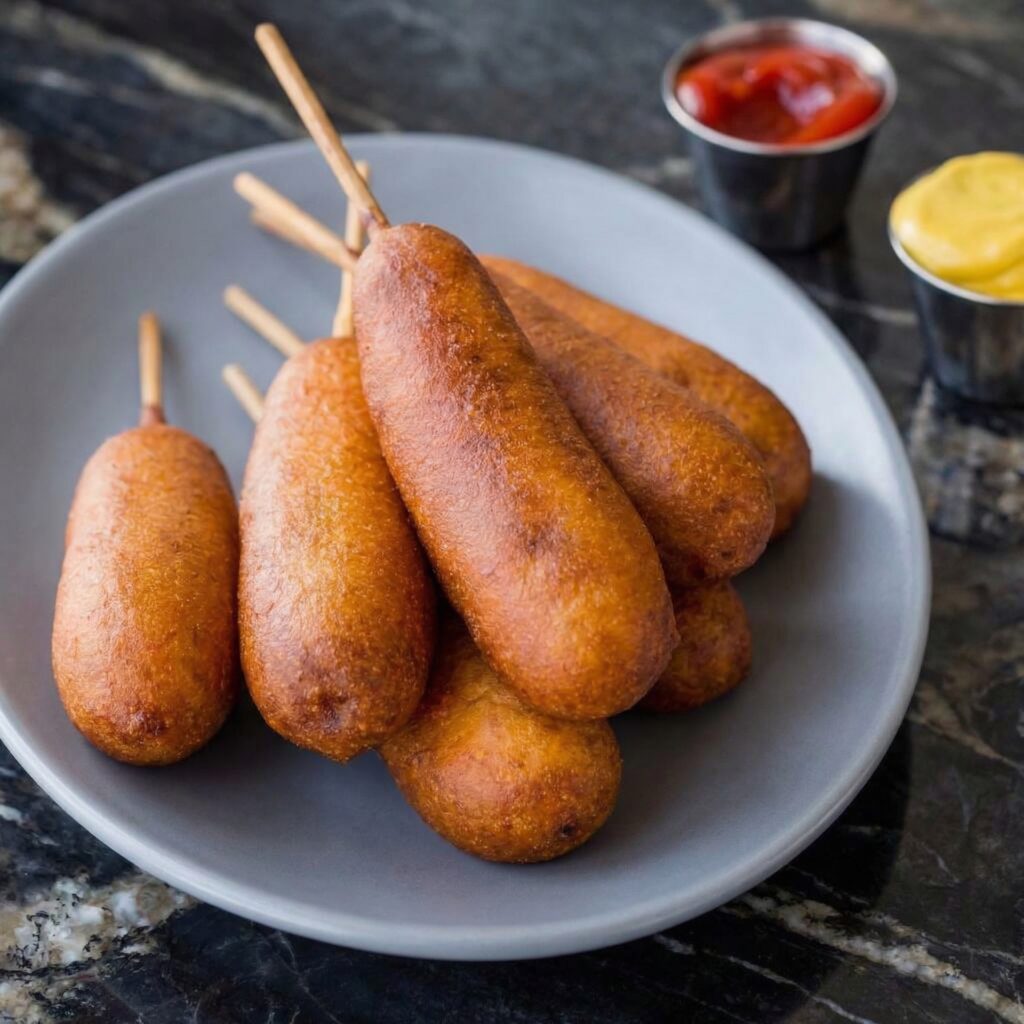 The combination of textures—crispy outside and juicy inside—is what makes corn dogs so satisfying. Plus, the wooden stick makes them easy to hold and fun to eat.