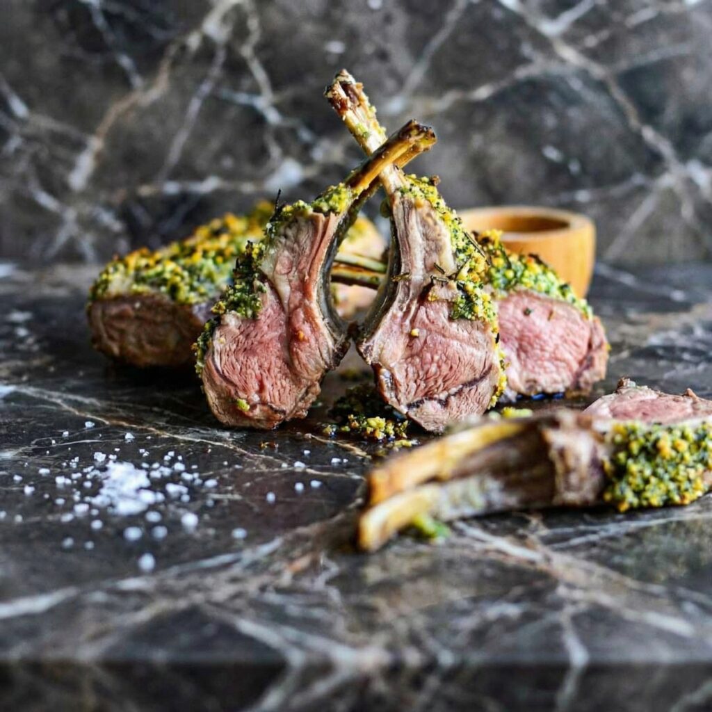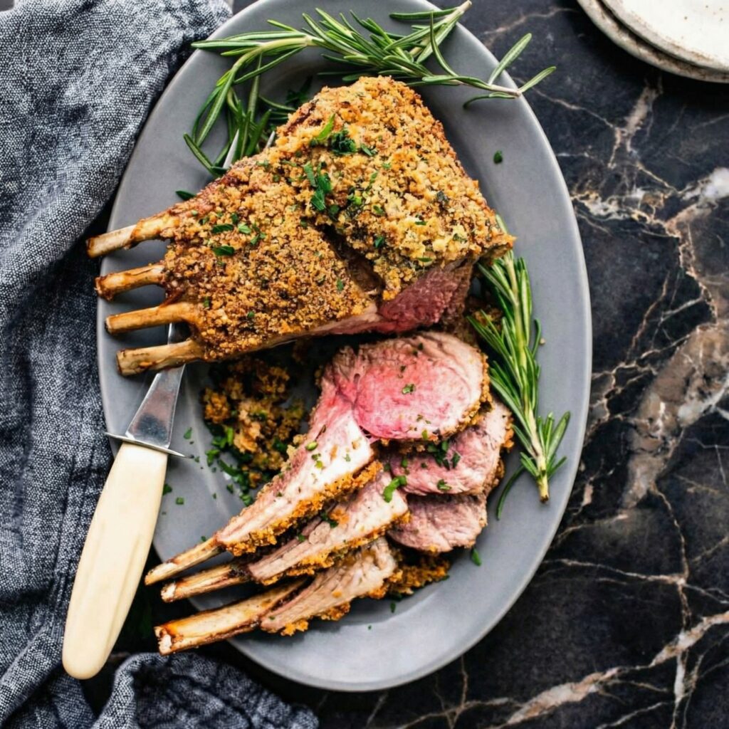 The herb crust is everything—fragrant rosemary, earthy thyme, punchy garlic, and nutty Parmesan, all coming together to form a golden, crispy coating on tender, perfectly pink lamb. Serve it with roasted potatoes and a green vegetable, and you’ve got a meal that looks like it came from a five-star kitchen.