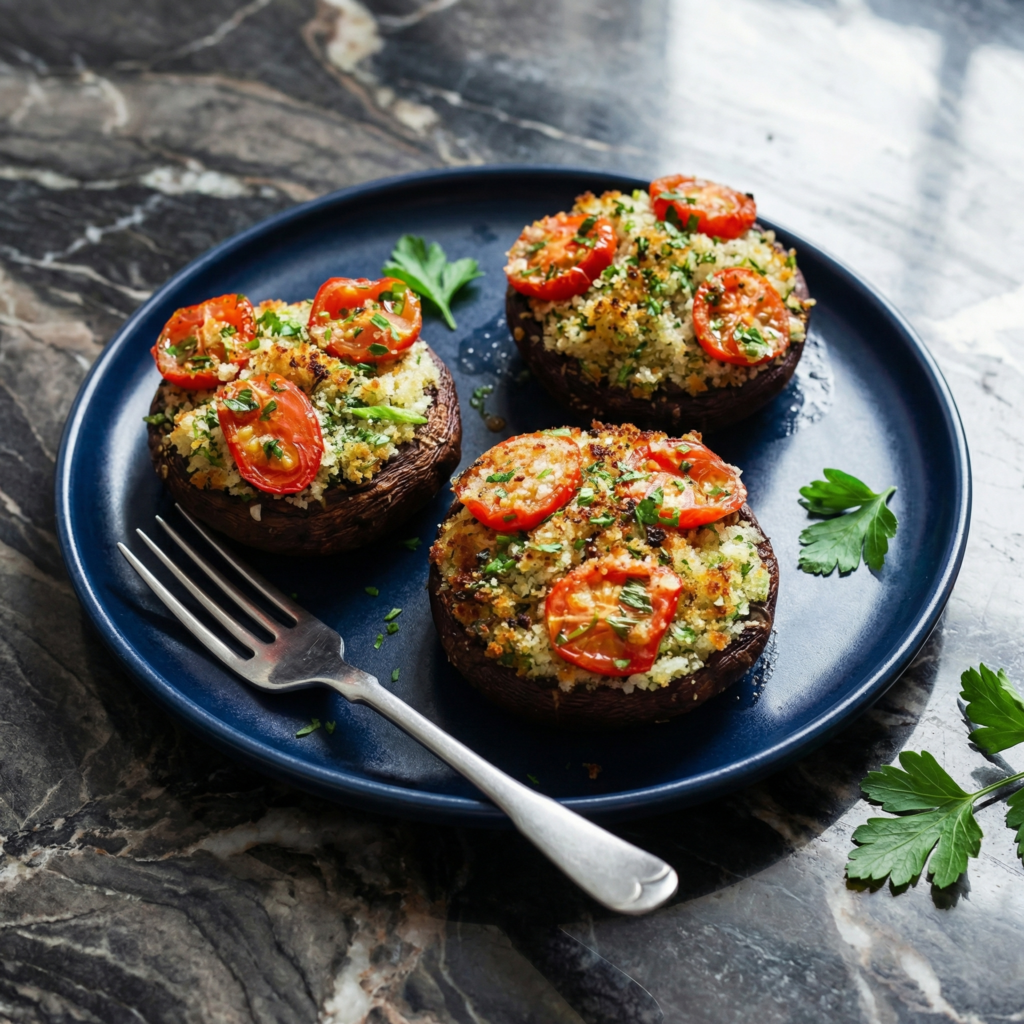 Use large portobello caps instead of cremini mushrooms. Increase bake time by 5-10 minutes. Serve with a side salad or roasted vegetables for a satisfying vegetarian main course.